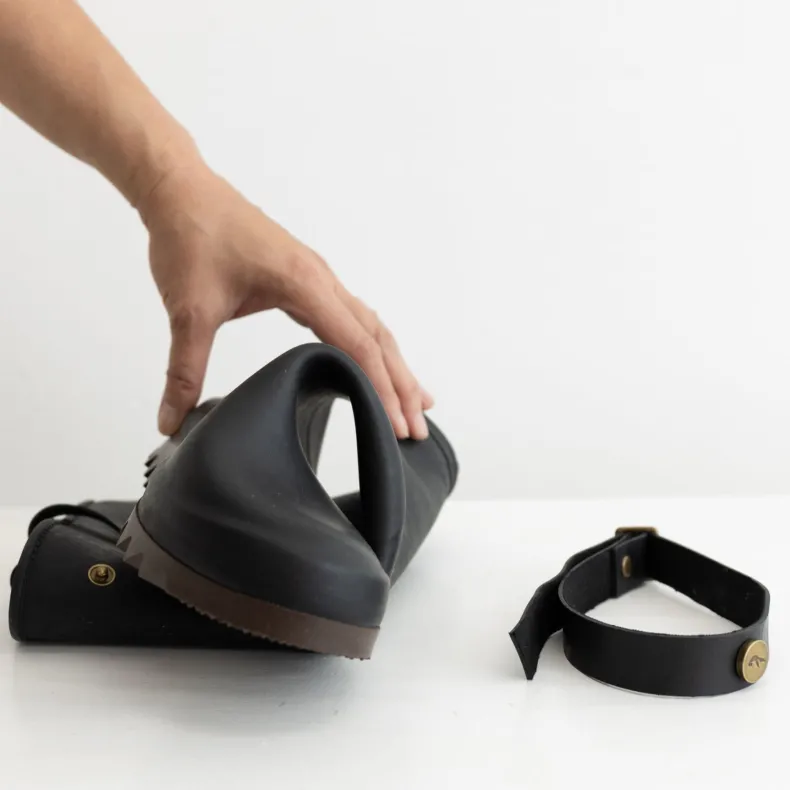 These unique rubber boots were designed by Daiichi Rubber with comfort, style, and durability in mind. Each aspect of the boot is designed with extreme care and consideration. The outer sole has a ripple design for a deep notch and grip. This allows the boot to be flexible and bendable, while still maintaining a firm grip on even the most slippery of surfaces. The pull on design of the boots is inspired by American agriculture, and the pull strap helps the wearer pull on or off the boots. Perhaps most uniquely of all, these boots were manufactured with “direct vulcanization”. This vulcanization method completely seals the boot, ensuring that your feet remain warm and dry. Finally, these boots can be folded for easy storage during dryer months!