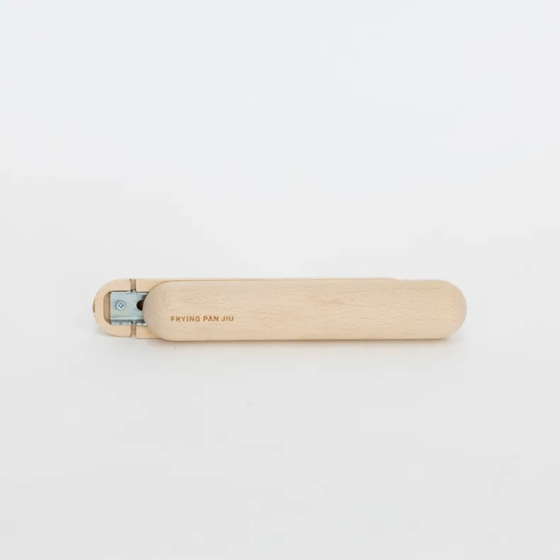 This sliding wood handle is meant to help you relocate your iron JIU JIU pan while protecting your hands. Each handle is handmade with a mechanism inside that allows you to slide half of the lid to come apart and fits onto anysection of the JIU JIU pan’s rim. Comes in a beautiful beech or walnut wood to fit your interior.
