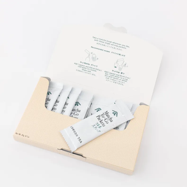 Authentic matcha conveniently packaged into single-serving portions, these are great for taking matcha on-the-go everywhere. Simply mix with water, iced or hot. Contains a medium-bodied, balanced matcha blend.