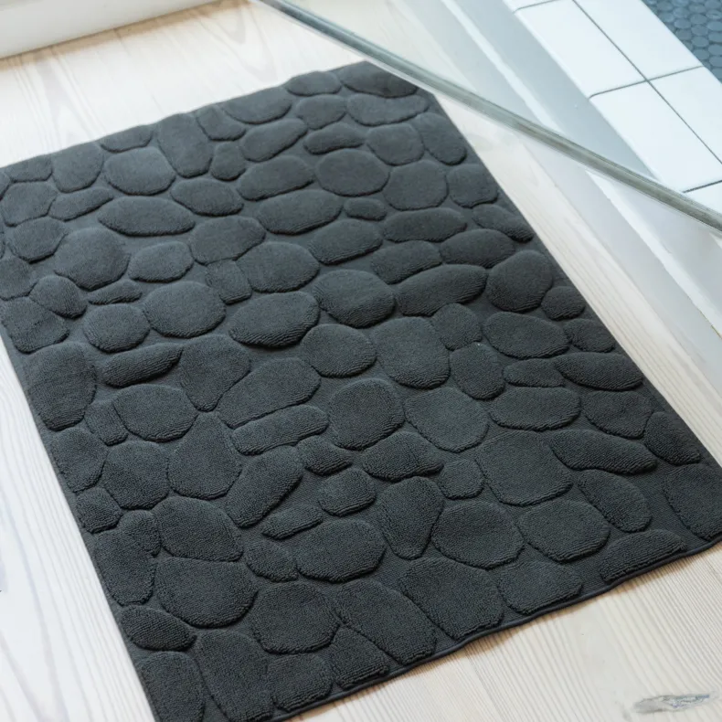Ishikoro pebble stone bath mat is a 100% cotton bath mat that was inspired by the river beds in Japan. Designed from an image of pebbles stones in the rivers, this very absorbent bath mat is great to step on when getting out of your shower or bath.