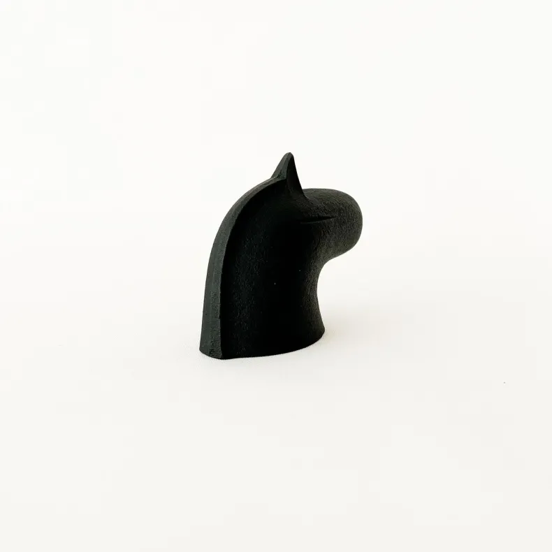 Interior designer Nobuho Miya is known for his functional cast iron cookware as well as this series of decorative animals sculptures. The Iron Sleeping Horse represents an innovation in the nambu tetsu (cast iron) tradition by combining art and design into one piece. This traditionally crafted iron horse can be used as a bookend, paperweight or decorative sculptural object. Due to the horse’s minimal yet evocative aesthetic, this piece will be at home in any modern interior. Each cast iron horse is finished with an urushi (Japanese lacquer) coat for a rich black that is resistant to rust.