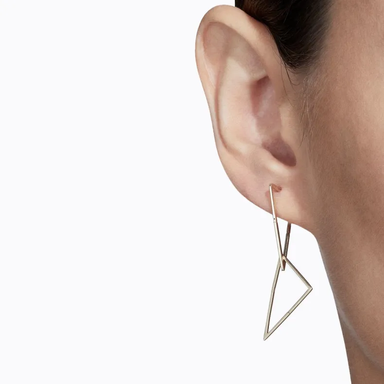 The Form collection consists of variations of 3:2 ratio forms with a concealed latch. The visual balance of the earring can be adjusted by shifting the fulcrum point.