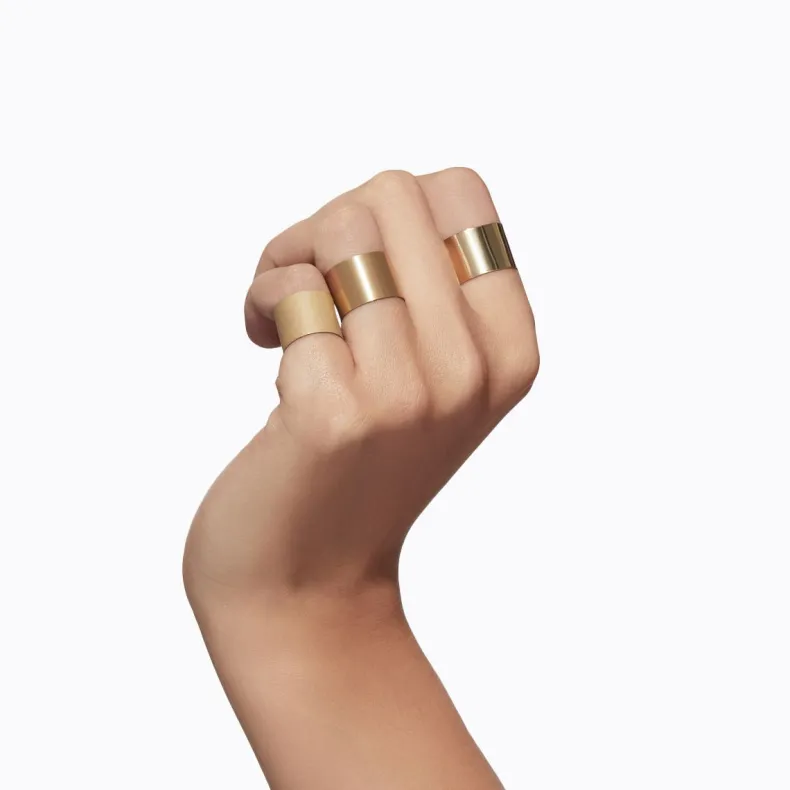 5mm,7.5mm,10mm,12.5mm, or 15mm width rings made from 0.4mm yellow gold plates. The thin ring is easily worn next to other rings,and the width can be chosen according to the length of your finger.