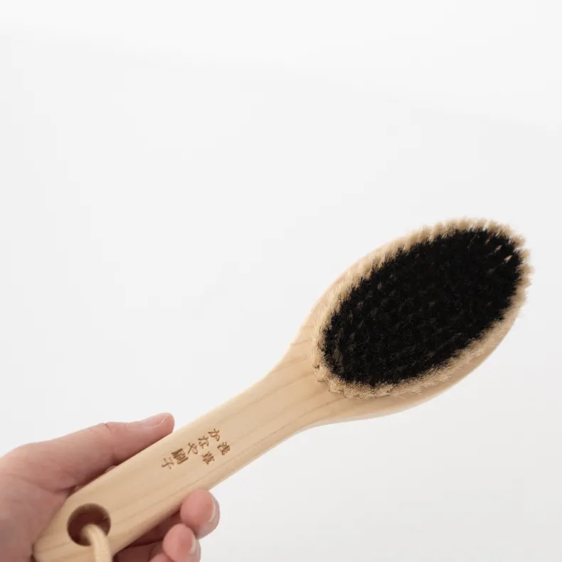 Kanaya’s short handled body brush features soft horse hair bristles that are gentle on the skin. Exfoliate by dry brushing or while bathing.