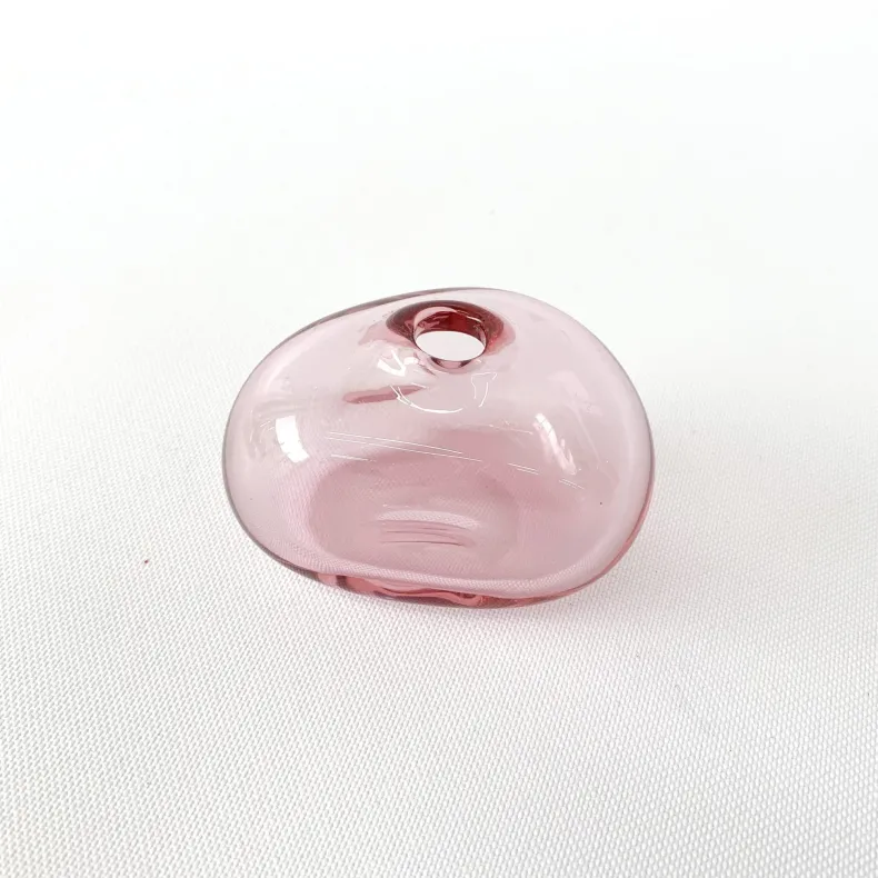 Colorful glass bud vases handmade in 4 differentshades and 3 organic shapes. Eachbud vase isentirely mouth-blownby skilled Japanese glassblowers, and will vary slightly in shape and tone. Place a single stem flower inside, or display a dry leaf – or simplyhave the glass bud vase stand alone, without holding anything inside, and enjoy its sculptural, natural stone-like shape.