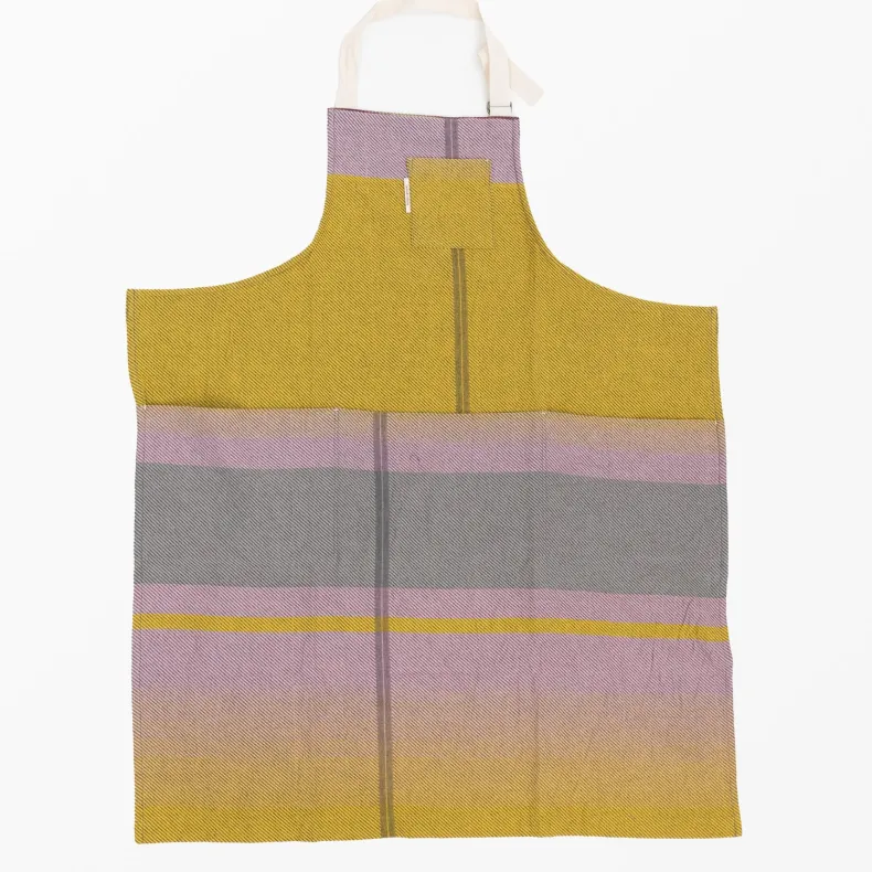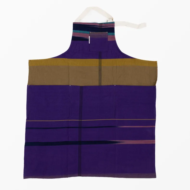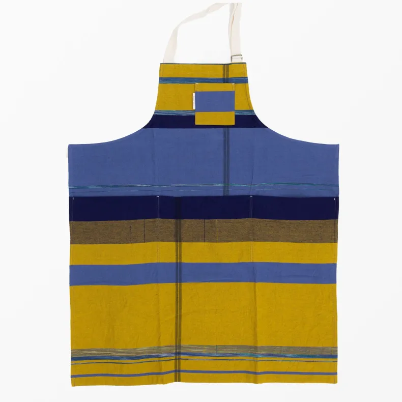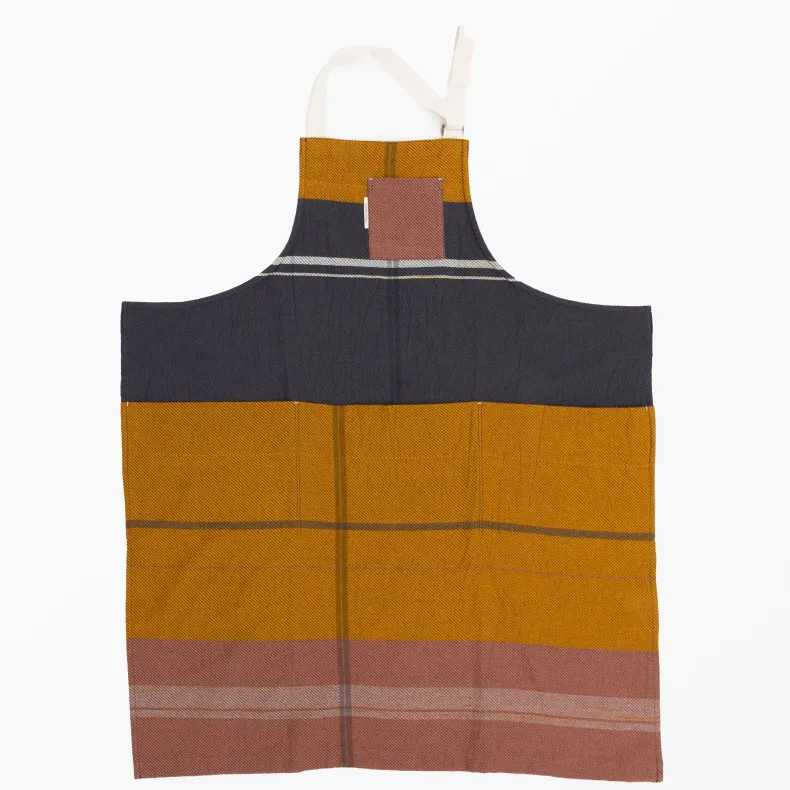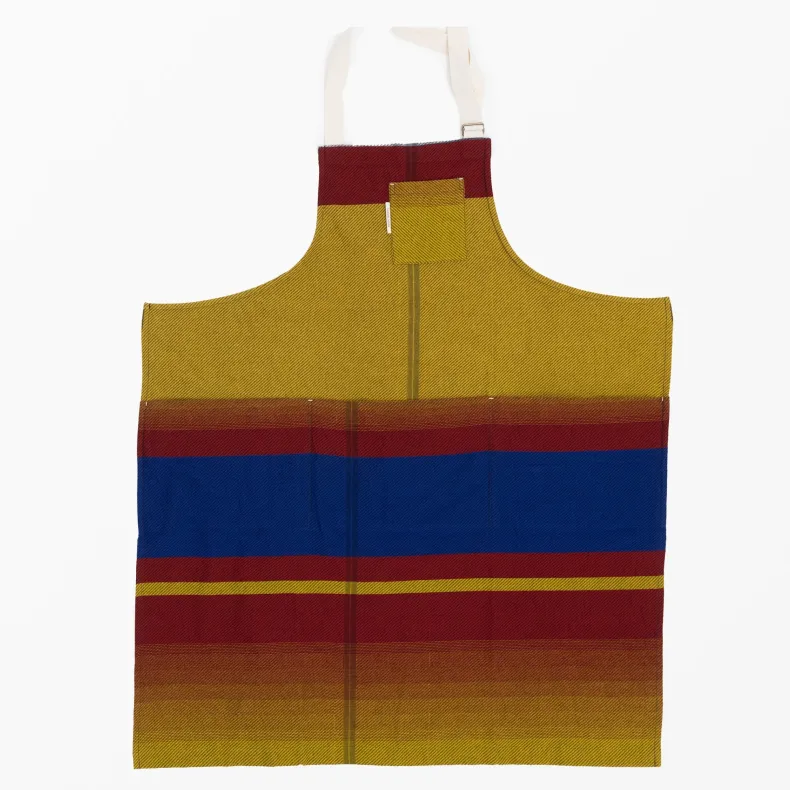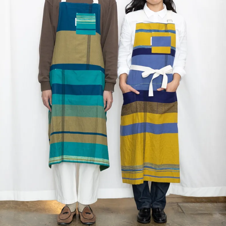 Discover the unique creations of Japanese textile designer Tamaki Niime with our unisex 100% organic cotton aprons in a delightful range of color combinations and patterns that will brighten up any chore. Featuring four thoughtfully designed pockets on the front — one near the chest and three deep pockets at the drop waist — these pockets add versatility as well an intriguing and stylish silhouette to each apron. The adjustable neck strap ensures a perfect fit, and the generously sized waist straps can be effortlessly tied in the front or wrapped around the back, allowing you to tailor your look to suit your preferences. Crafted from lightweight and incredibly soft organic cotton, their eye-catching design makes them a statement piece, whether you’re in the kitchen or out and about!