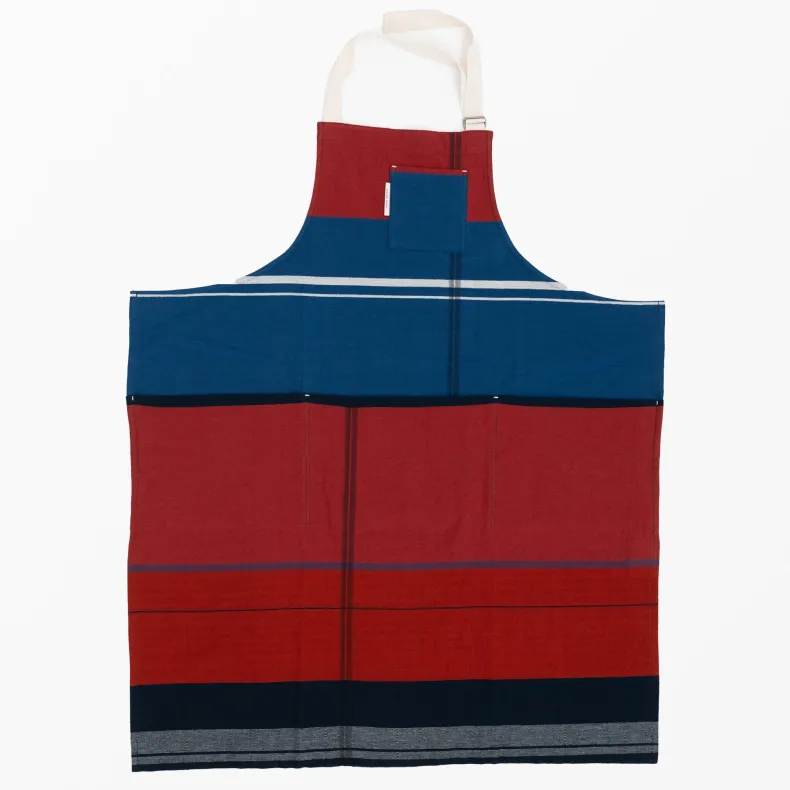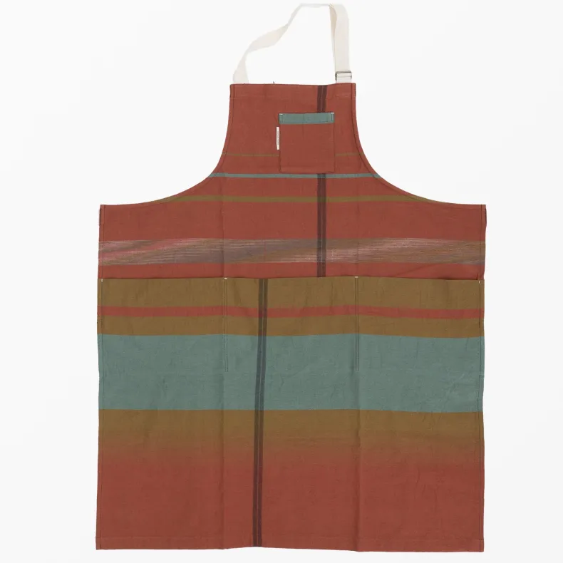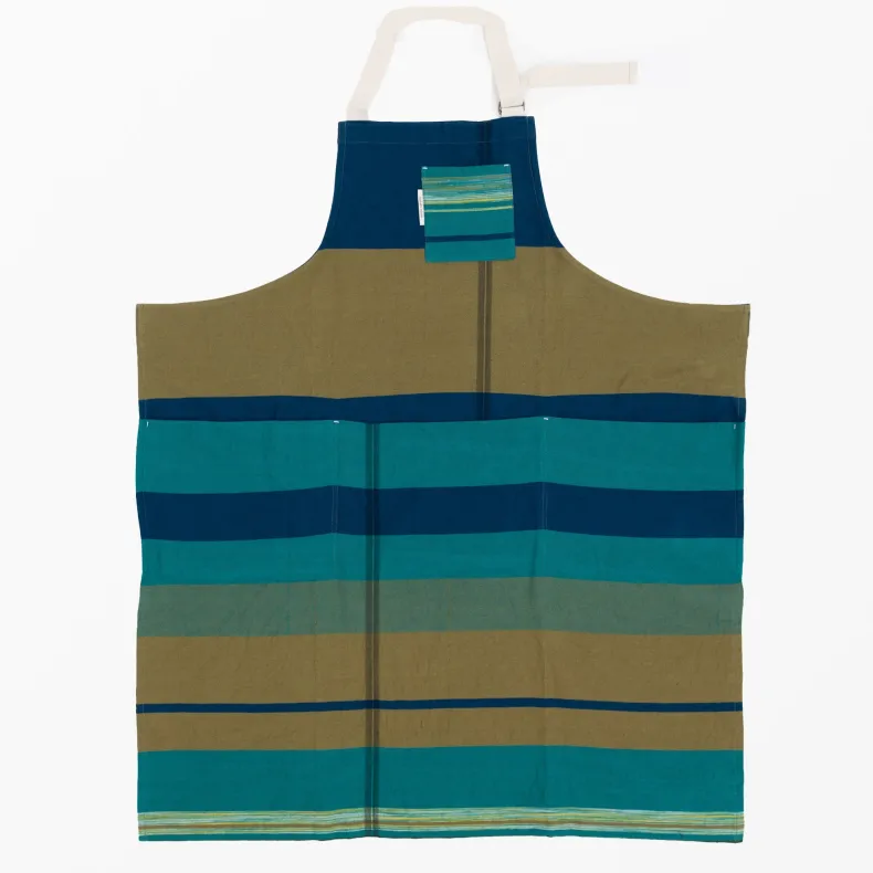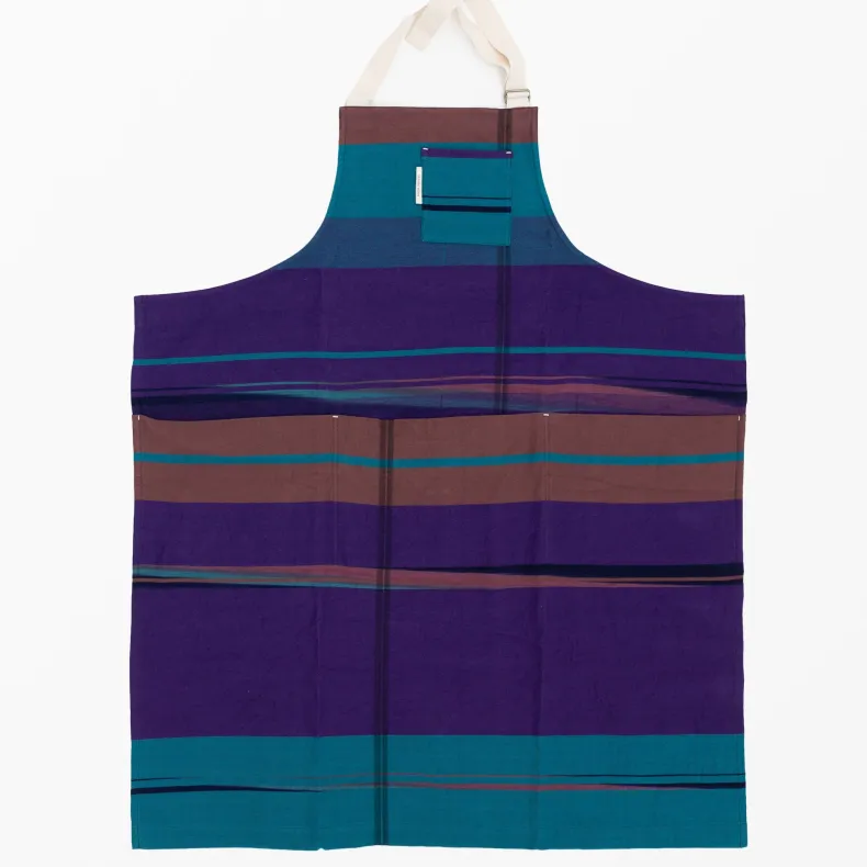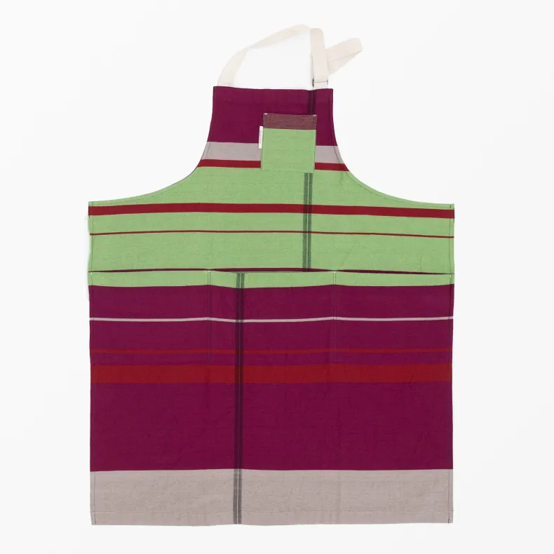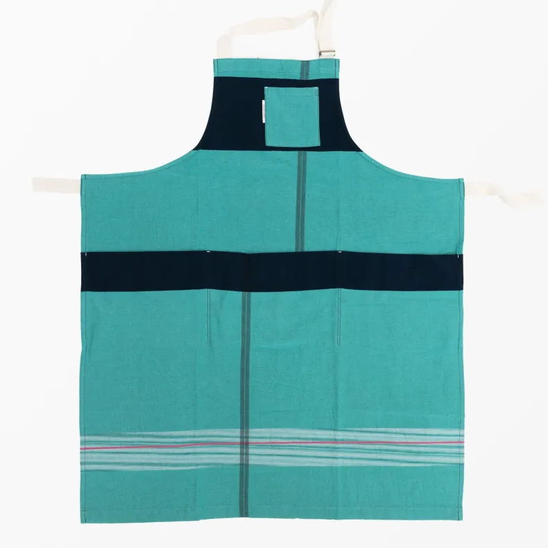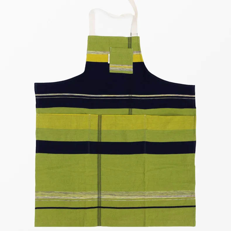 Discover the unique creations of Japanese textile designer Tamaki Niime with our unisex 100% organic cotton aprons in a delightful range of color combinations and patterns that will brighten up any chore. Featuring four thoughtfully designed pockets on the front — one near the chest and three deep pockets at the drop waist — these pockets add versatility as well an intriguing and stylish silhouette to each apron. The adjustable neck strap ensures a perfect fit, and the generously sized waist straps can be effortlessly tied in the front or wrapped around the back, allowing you to tailor your look to suit your preferences. Crafted from lightweight and incredibly soft organic cotton, their eye-catching design makes them a statement piece, whether you’re in the kitchen or out and about!