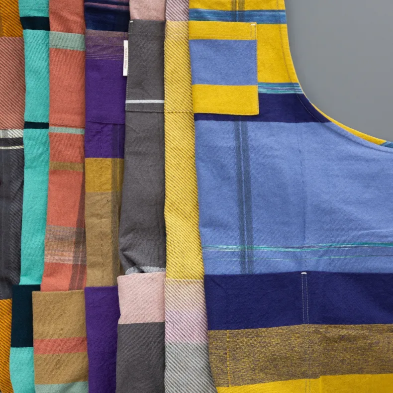 This item is an “Only One” item. The concept means that eachapron is a one-off item and there’s only one of it in existence with these colors and cut. Tamaki Niime chooses different thread colors for every single “Only One” apron, so each item is totally unique from other aprons within their line.