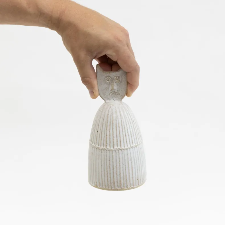 Beckon your hungry guests with a ceramic bell shaped like a cat, handmade on the wheel by Japanese ceramicist Tomoko Morisaki.