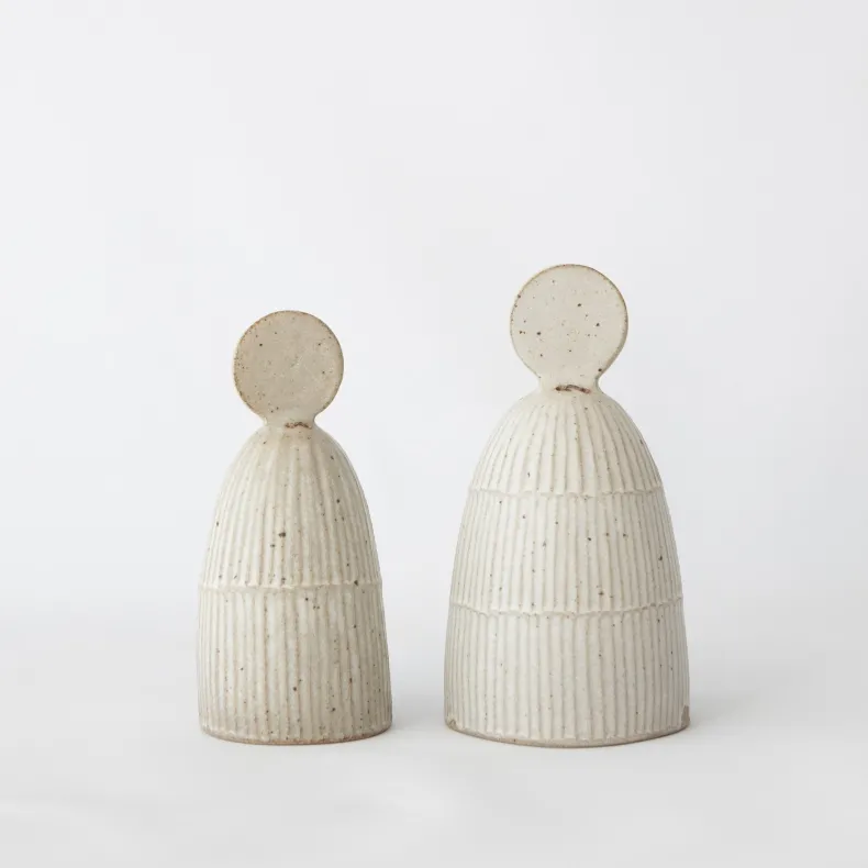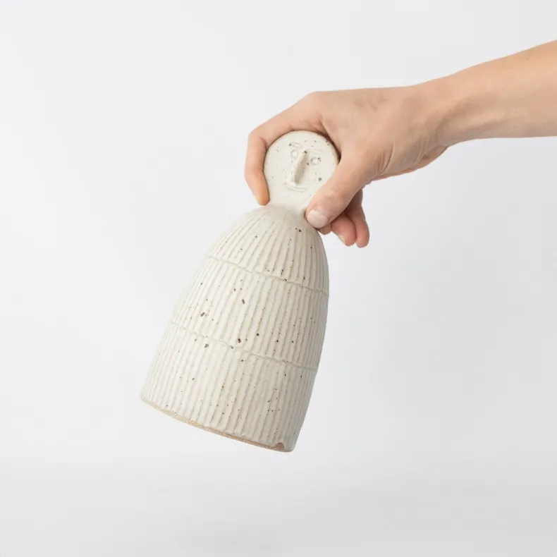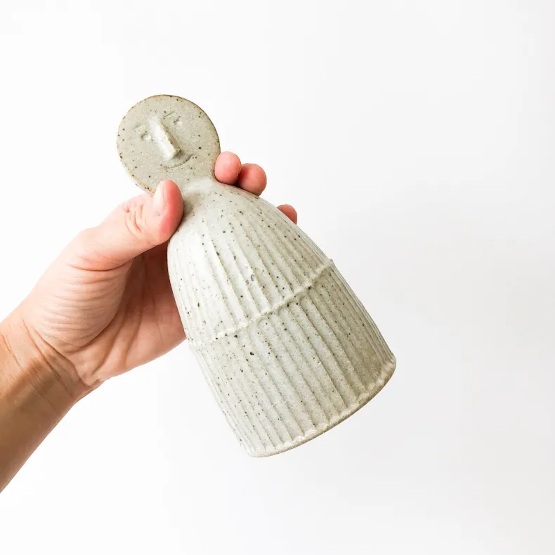 Beckon your hungry guests with a smiling ceramic bell, handmade on the wheel by Japanese ceramicist Tomoko Morisaki.