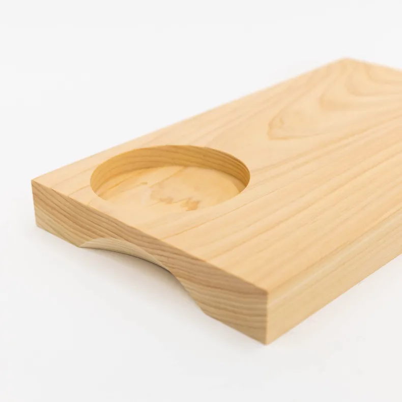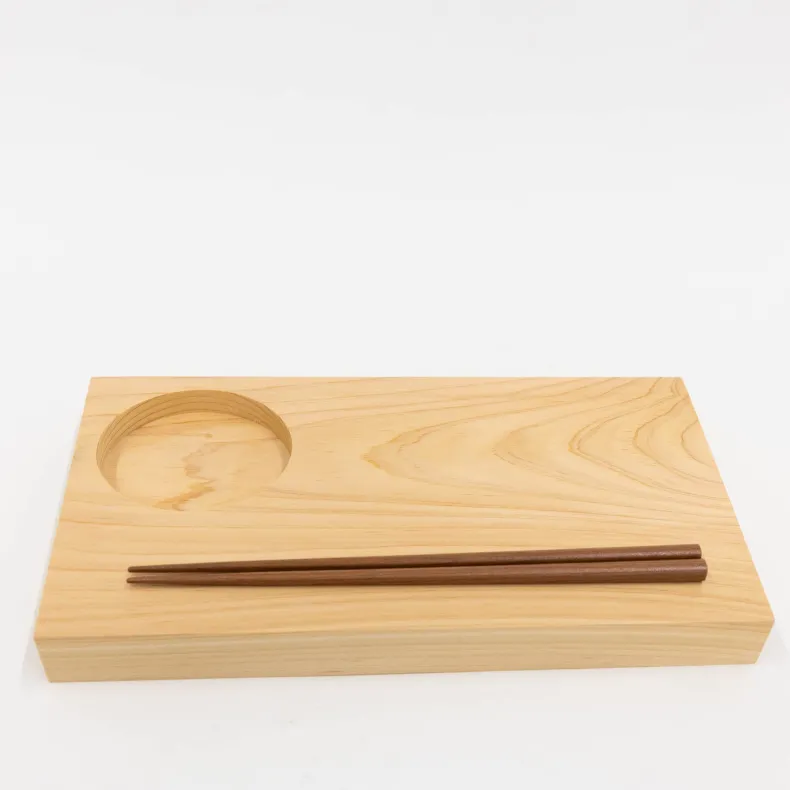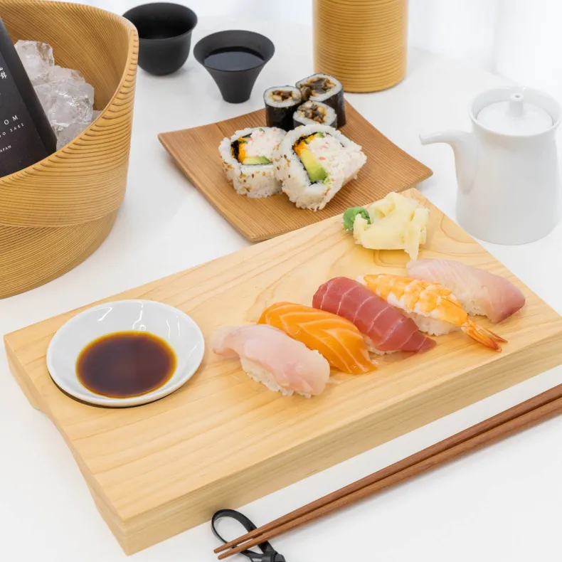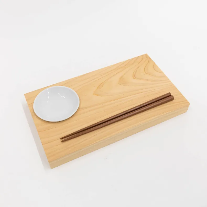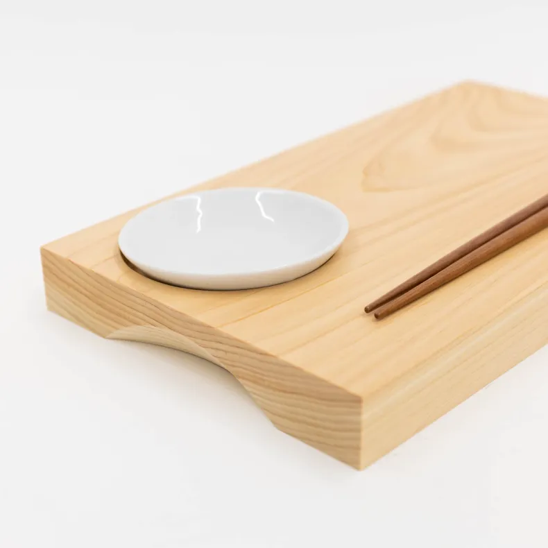 Made from aromatic Japanese cypresswood called “hinoki” of the highest grade, this simple and elegant tray serves as a platter for sushi and sashimi with its matching soy sauce dish and set of chopsticks. Hinoki excretes a natural resin that keeps thewood from growing mold and mildew, and is naturally resistant tobacteria as well as absorbing food odors, which makes it an ideal serving dish for food. This tray easily doubles as a charcuterie board and crudités platter when not used for sushi!