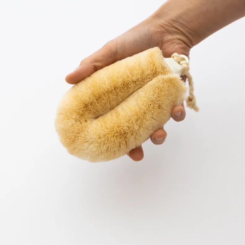 Tawashi scrubbing brushes in Japan are usually used for housekeeping, but this effective scrubbing brush is made for your body. This brush is made entirely from natural fibers, and when combined with soap and warm water provides a massage-like scrub that can’t be attained from just a towel or sponge.