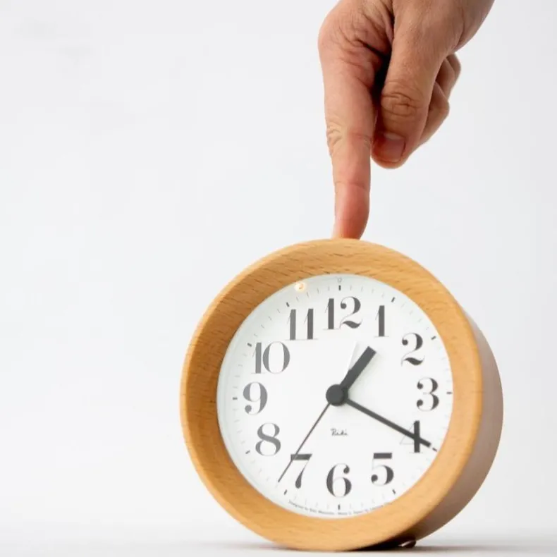 This simple alarm clock was designed by the pioneer of modern Japanese design, Riki Watanabe. Paired with a tiny night light and a powerful alarm sound, this clock will wake you up and keep you on track throughout your day. The minimalist wooden frame with its simple and modern face gives this clock an elegant appearance fitting many different interiors. The clock has a sweeping second hand and there is no ticking sound.