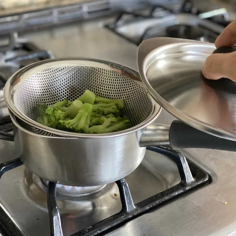 Sori Yanagi’s classic stainless steel milk pot is the perfect merging of functionality and elegance. Its unique yet timeless designensures you can pour out sauces or liquids without spilling. When rotated, the pot’s lid creates a small gap for steam to be released from inside to prevent its contents from boiling over. Manufactured using thin, lightweight, high-quality stainless steel, these pots are long-lasting and user-friendly, making themideal for daily use. This piece also works seamlessly with his series of strainers so that the milk pan can be converted into a small steamer. Pro-tip: Yanagi’s stainless steel strainer in the small size will fit with this milk pot.